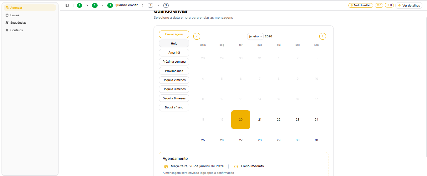 - Confirme o agendamento e acompanhe o status na aba de Envios.