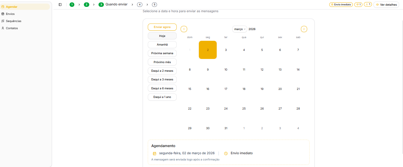 1️⃣ Defina a data e o horário do envio da mensagem.