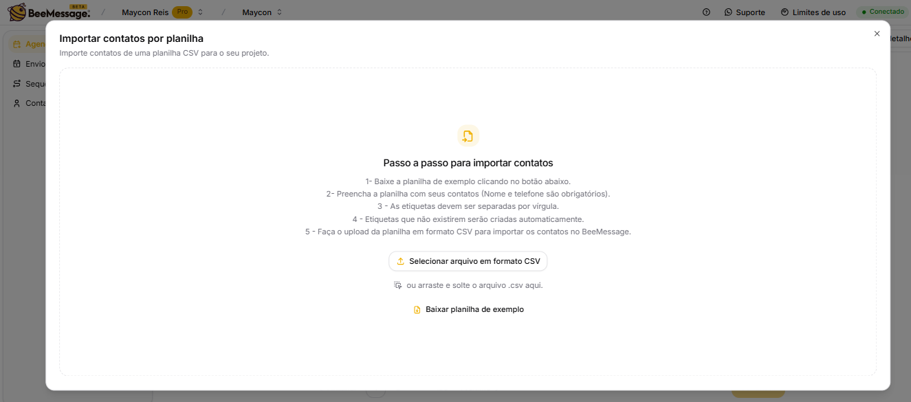 2. Importando Contatos para o BeeMessage